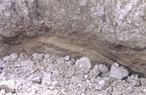 Figura 3. Área de cuevas (Mirando al sur, el área de cuevas tiene aproximadamente 30 pies de largo y 11 a 13 pies de profundidad.)