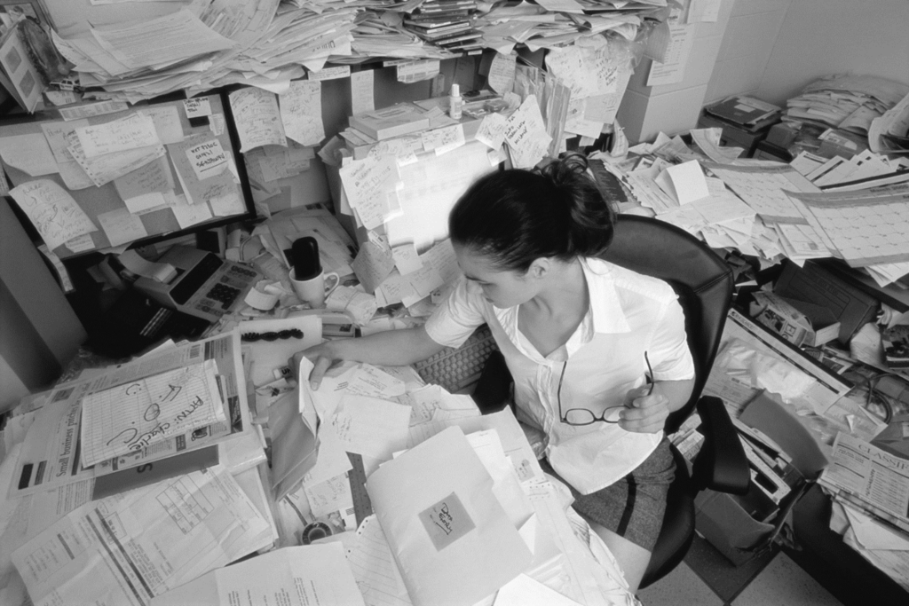 See the image above there is a girl sitting on her messy desk with a sea of old paper work, business cards, coffee cup etc. Organized workspace is key to doing a good job before a work task. Likewise workers can negatively impact their own productivity at work. While messy desks play a big part in upsetting the aesthetics of a work environment, they can also impact workers’ mental wellbeing. Having your desk clean and organized helps to your productivity and makes you being unstressed at work.
