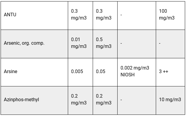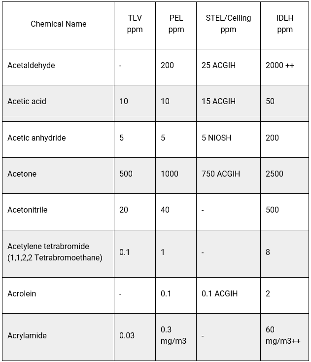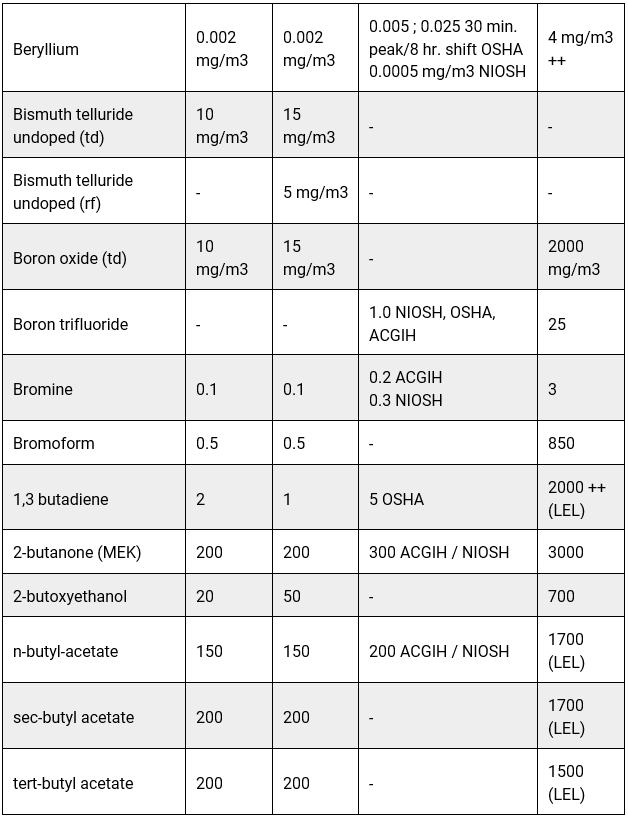 Information on the most up to date NIOSH chemical hazards can be found online in the NIOSH Pocket Guide to Chemical Hazards, NIOSH, 2010