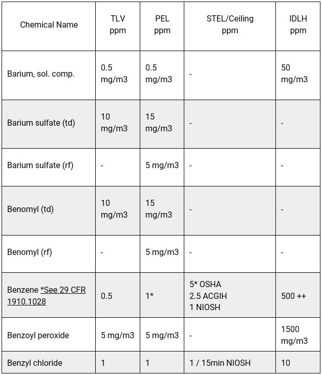 OSHA 29 CFR 1910.1000, Table Z-1