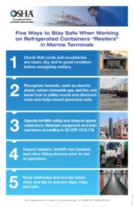 Five Ways to Stay Safe When Working on Refrigerated Containers “Reefers” in Marine Terminals Poster
