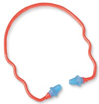 Hearing bands: Consist of a pair of earplugs connected to a flexible band, which can be worn in a number of positions (over the head, under the chin or behind the neck). The NRR of these bands is similar to most earplugs. The band allows this item to be stored around the neck while not in use. Depending on which position the band is worn in, these can be used with most any hardhat, face shield or glasses.