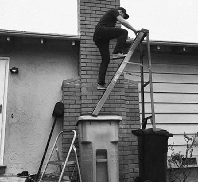 What is wrong in this picture? There is a guy trying to climb one more step but the position of his ladder is so bad that there is a high percentage of him falling without realizing it.