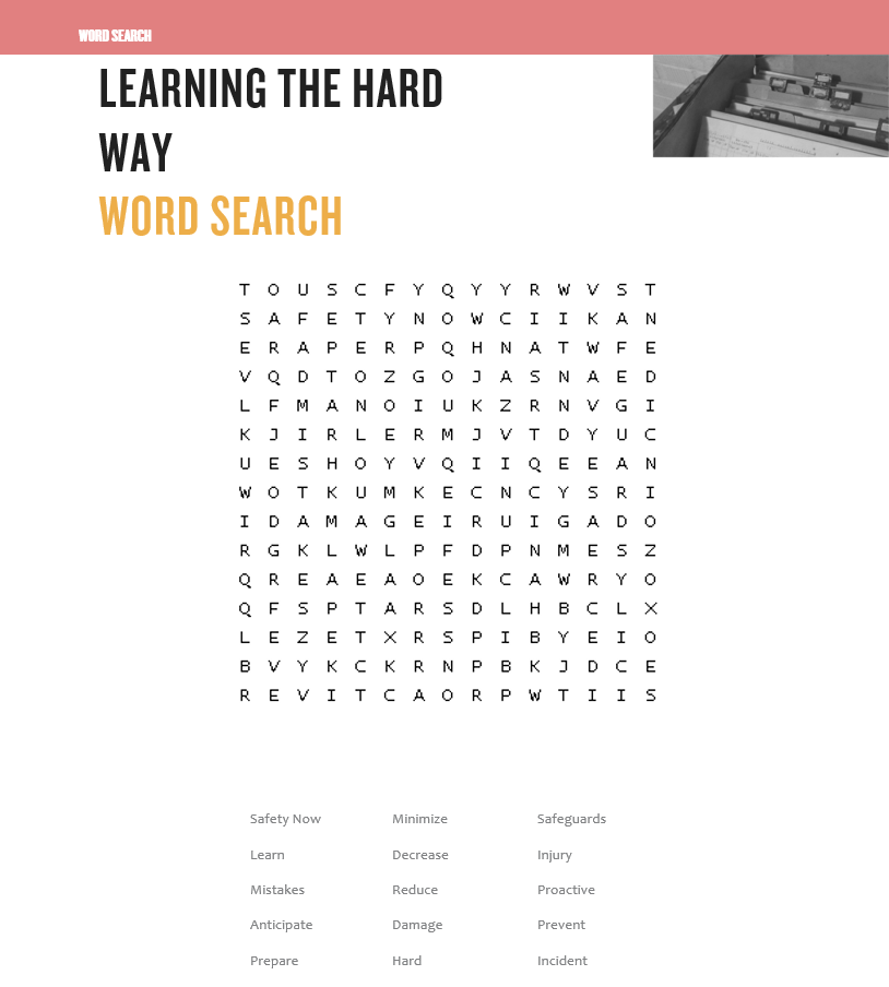 Learning the Hard Way Word Search