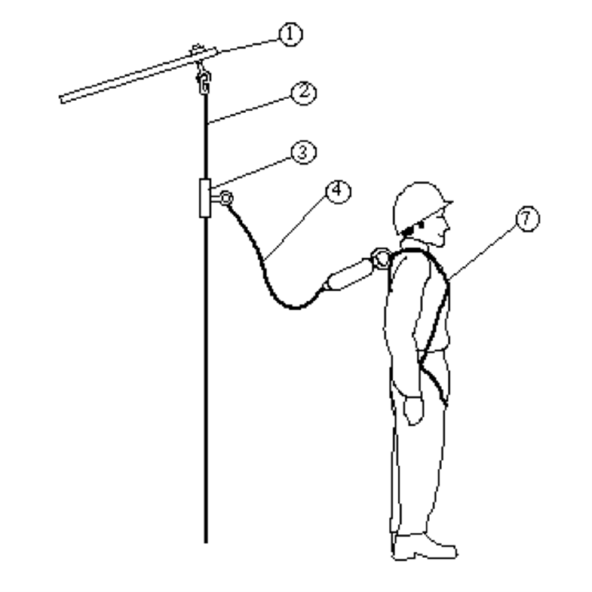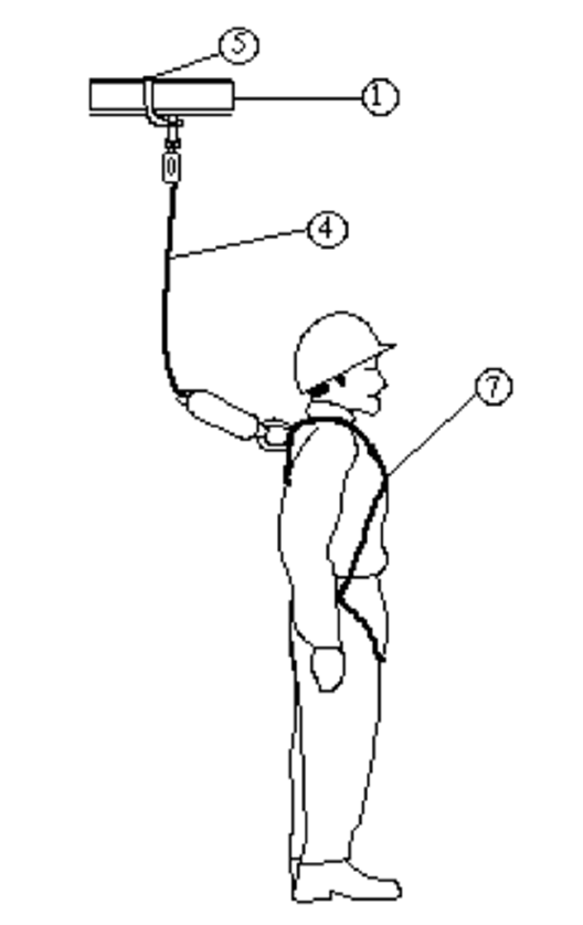 - Fall arrest backup: Shock-absorbing lanyard or self-retracting lifeline (SRL)
