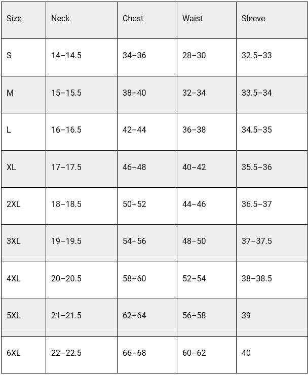 Unisex Sizing Chart