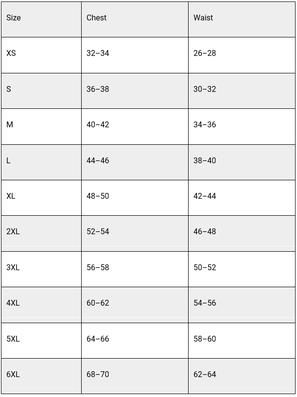 Please note that these charts are a guide for garment selection, but proper fit varies with individual body shape, underclothing, type of clothing and manufacturer. Test for proper fit before use. Garment performance depends on selecting the appropriate size.