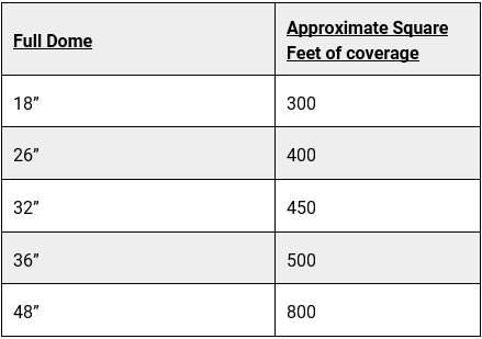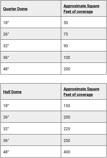 - The larger the mirror, the larger the objects will appear in the mirror. Full domes offer the most robust view, followed by half domes, and then quarter domes.