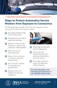 Steps to Protect Automotive Service Workers from Exposure to Coronavirus Poster